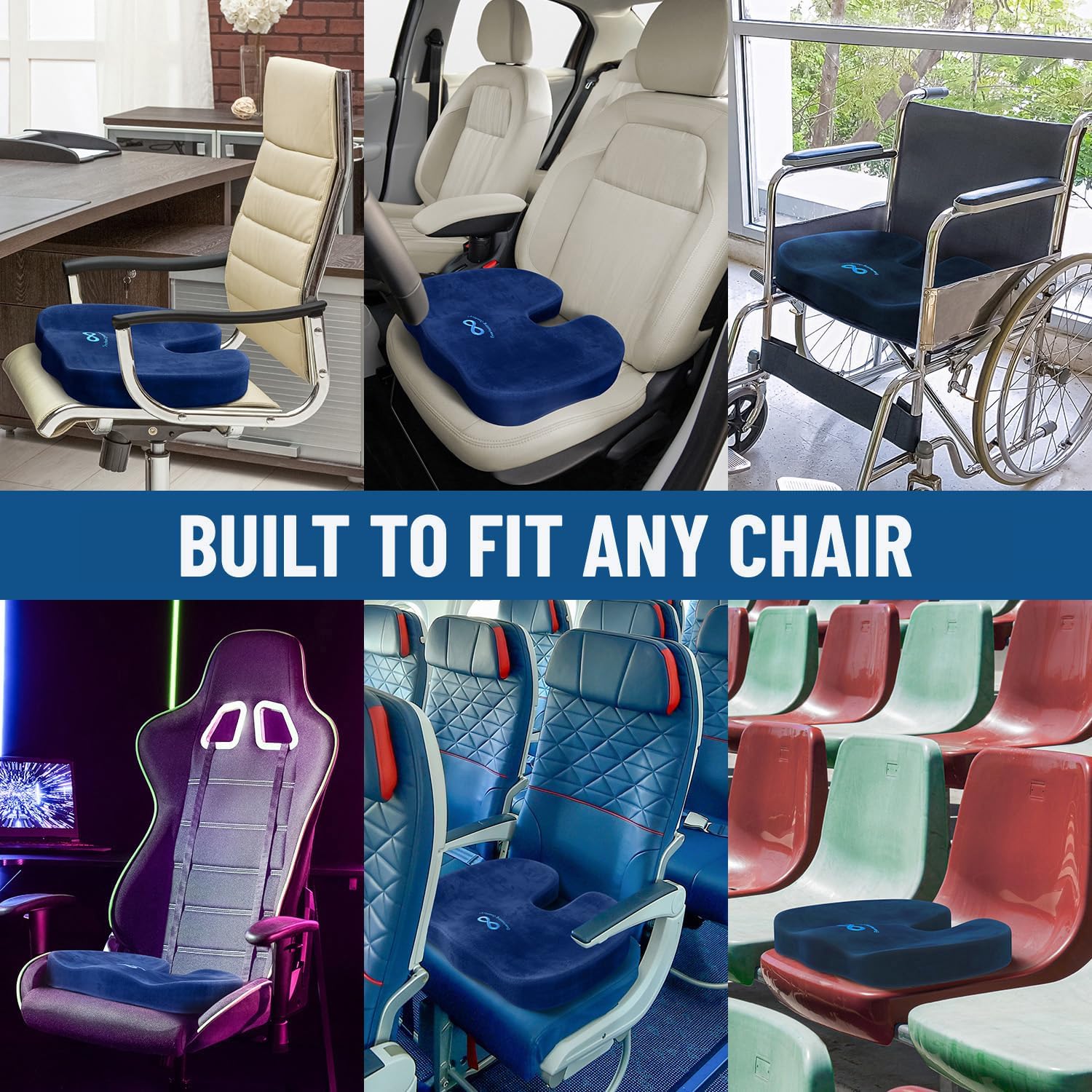 • 100 PERCENT MEMORY FOAM CUSHION FOR CAR: Made from 100 percent memory foam, our office chair cushion ensures lasting durability and consistent support; Ultimate comfort as a gaming chair cushion, desk chair cushion, or wheelchair cushions. Our multi-use seat cushions are ideal for an ergonomic seat cushion for office chair, usable with desks, automotive car seats, on an airplane ride and flights, stadium benches, and are computer chair pad or truck driver must haves