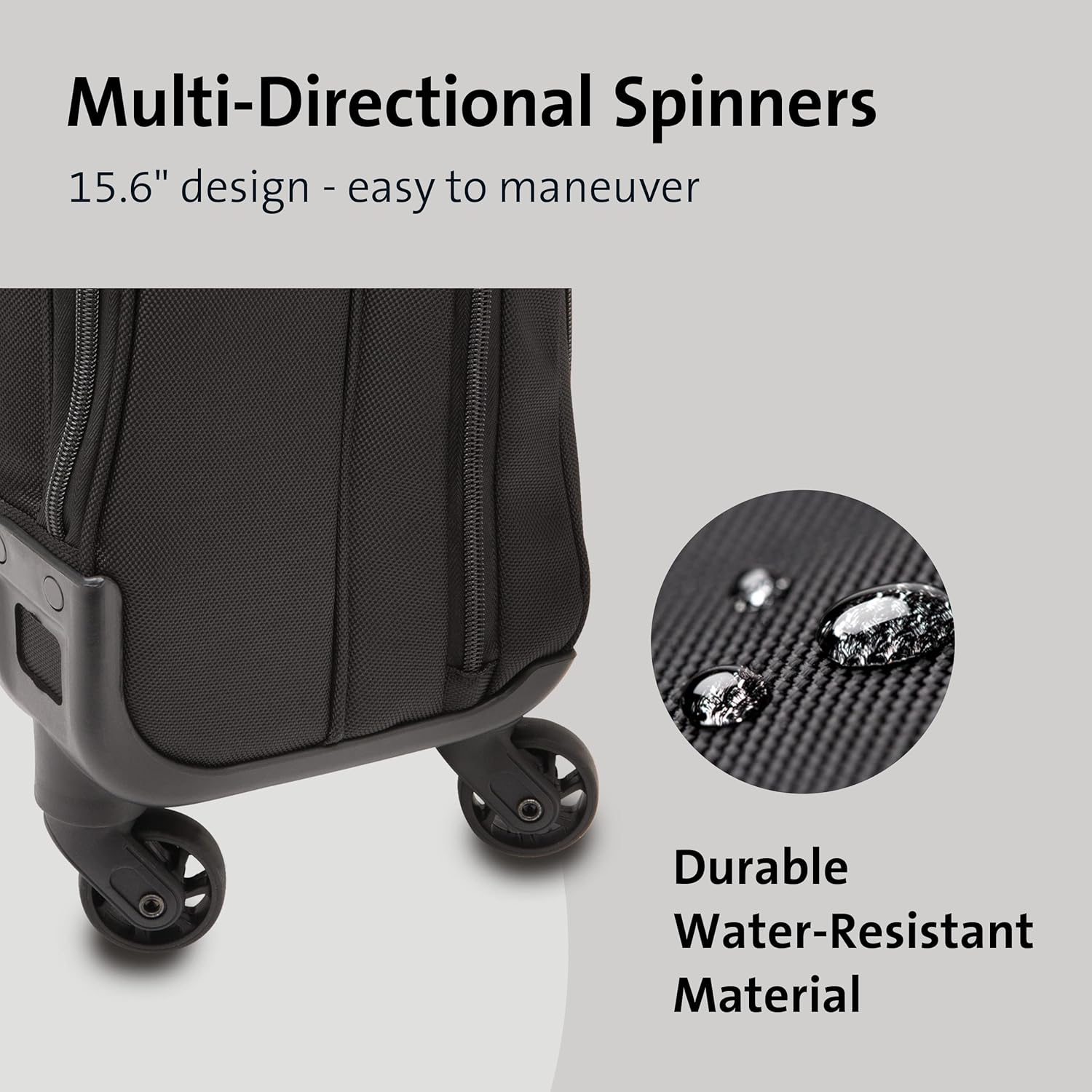 • Laptop compartment with drop protection adds an extra layer of interior protection between the laptop compartment and spinner base.