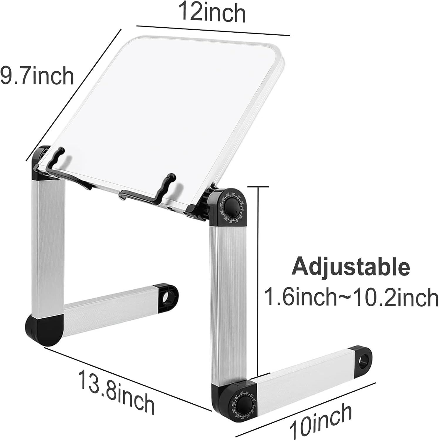 - 【Ergonomic Relax Body Working Stand】 Adjustable working Stand designed with multi different adjustable angles and heights allow promoting proper posture for better spinal health, every 15°is a gear adjustment, adjust the height and angle according to your needs by pressing the button on the lightweight metal frame. Ergonomic cookbook holder eliminates eyes, neck, back and shoulder fatigue or pain meanwhile increasing your concentration and reading hours improve learning efficiency.