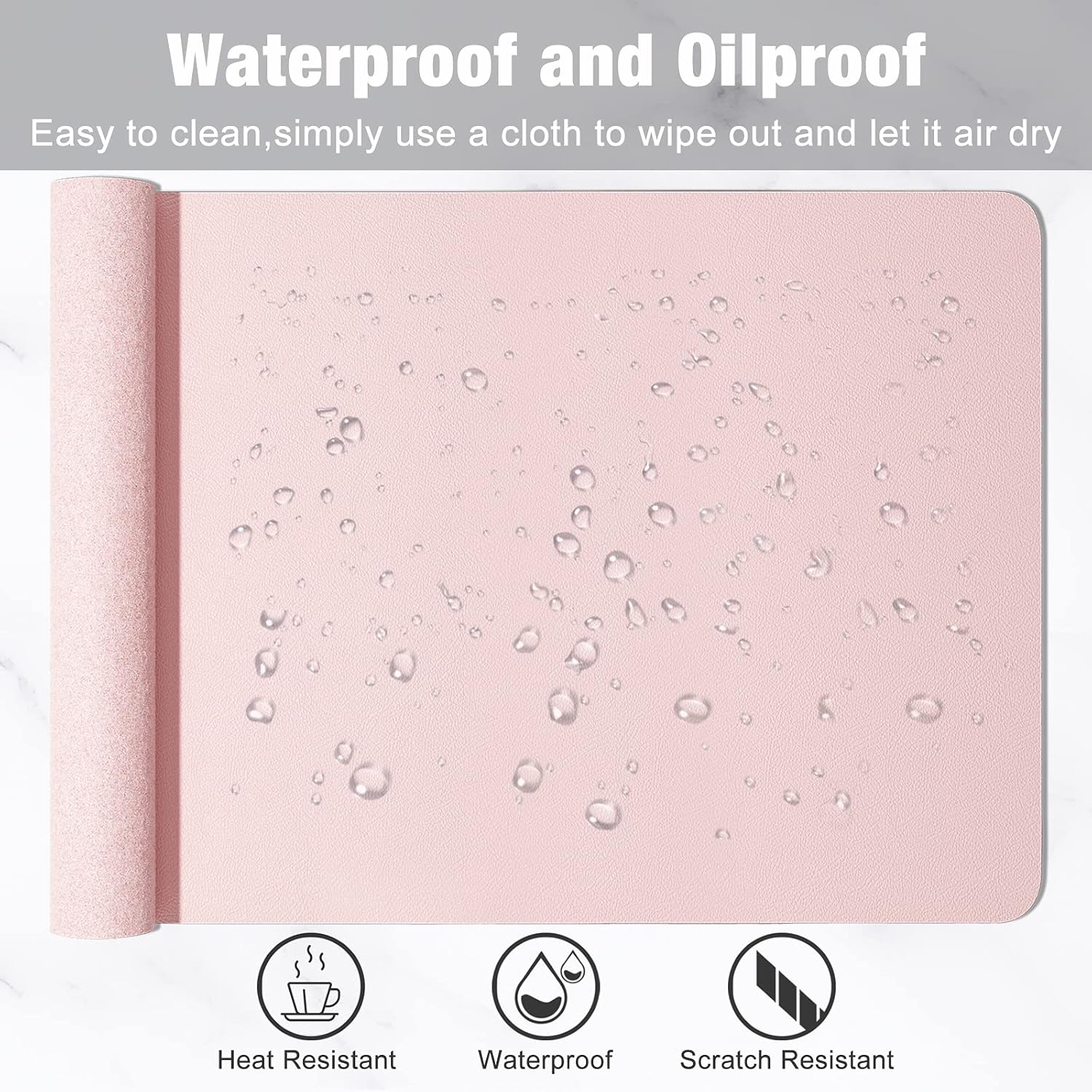 Hsurbtra Desk Pad, 35.5" x 17" PU Leather Desk Mat, XXL Extended Mouse Pad, Waterproof Desktop Blotter Protector, Non-Slip Ultra Thin Large Laptop Keyboard Writing Mat for Office Home, Pink