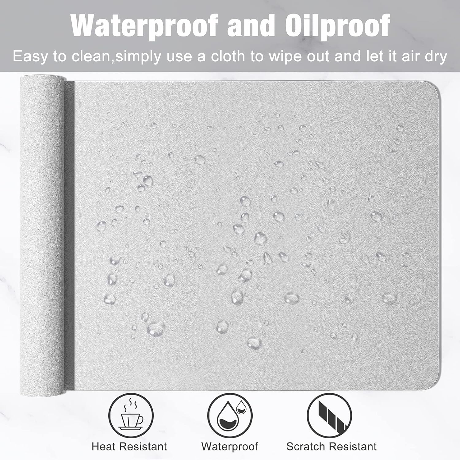 - Non-slip Base & Waterproof Surface: Suede material used for the back side for slip resistance. Synthetic leather used for the upper use side, waterproof, oilproof and anti-fray. Deskpad is easy to clean with a wipe and features great locking-color effect