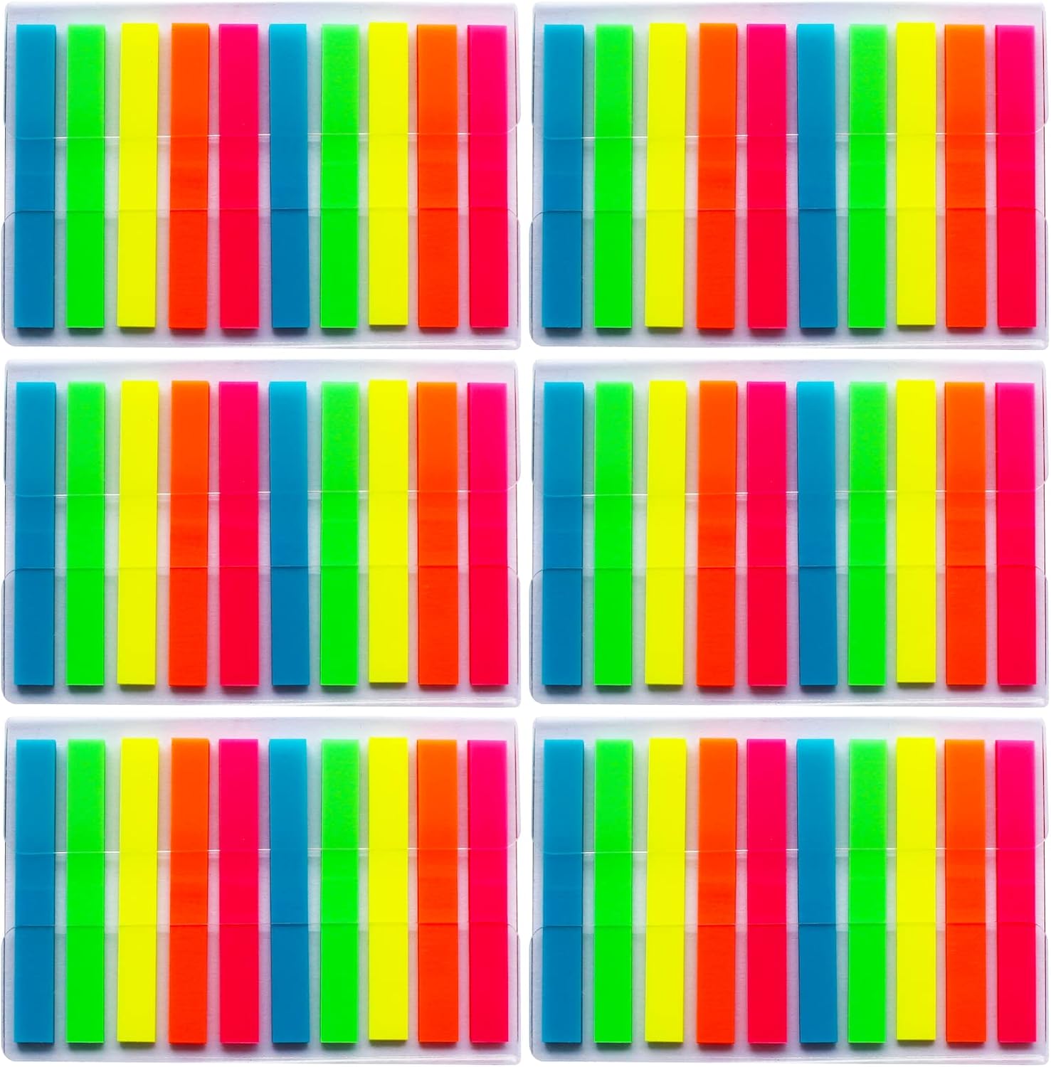 Thin Page Flags Markers Assorted Color, 1200 Pages Total, 0.24x1.73 Inch Standard Flag Tabs, Easy to Post, 6 On-The-Go Dispensers/Combo Pack