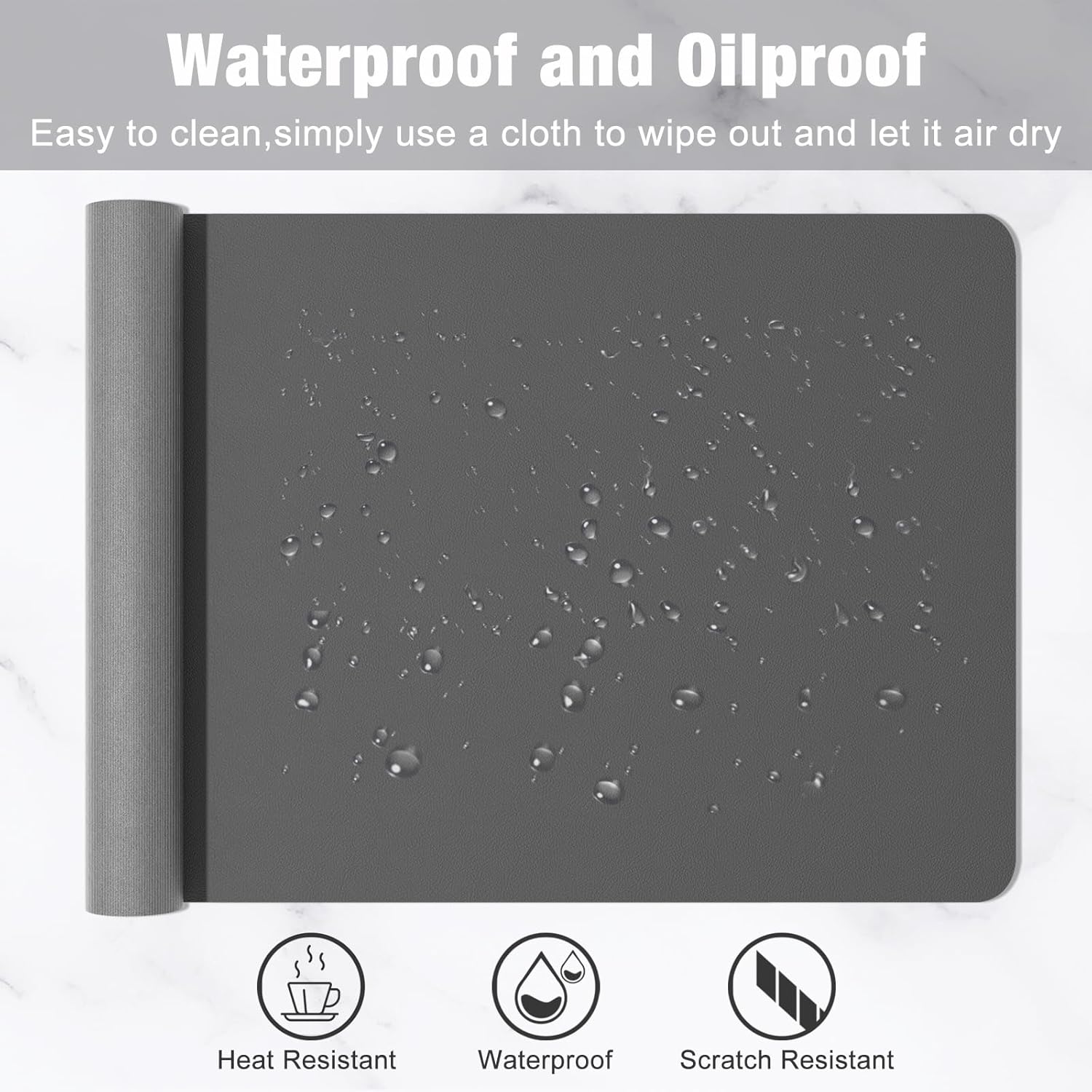 - Non-slip Base & Waterproof Surface: Suede material used for the back side for slip resistance. Synthetic leather used for the upper use side, waterproof, oilproof and anti-fray. Deskpad is easy to clean with a wipe and features great locking-color effect