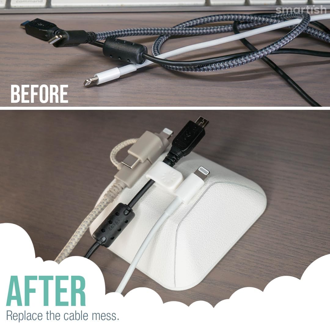 - Keep Cables Organized - Never drop a cable behind your nightstand again and say goodbye to the frustration of untangling knotted cables. Cable Wrangler by Smartish uses a magnetic system to keep your cables organized and within easy reach. Simply hold the cable near the top of the Wrangler, and the magnet will securely grip it in place. No more wasted time wrestling with a tangled mess – your cables will be neatly stored and ready to use whenever you need them.