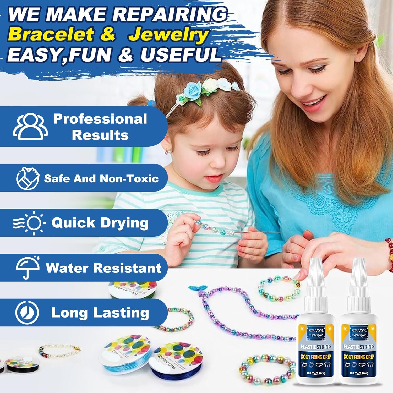 Jewelry Bracelet Glue for Elastic String Knot,2 Pcs Clear Clay Beads Glue for Bead Charms, Punctuation Beads, Jewelry Bracelet Making Supplies Kit for Plastic Bracelet Stretchy Cord (100g)