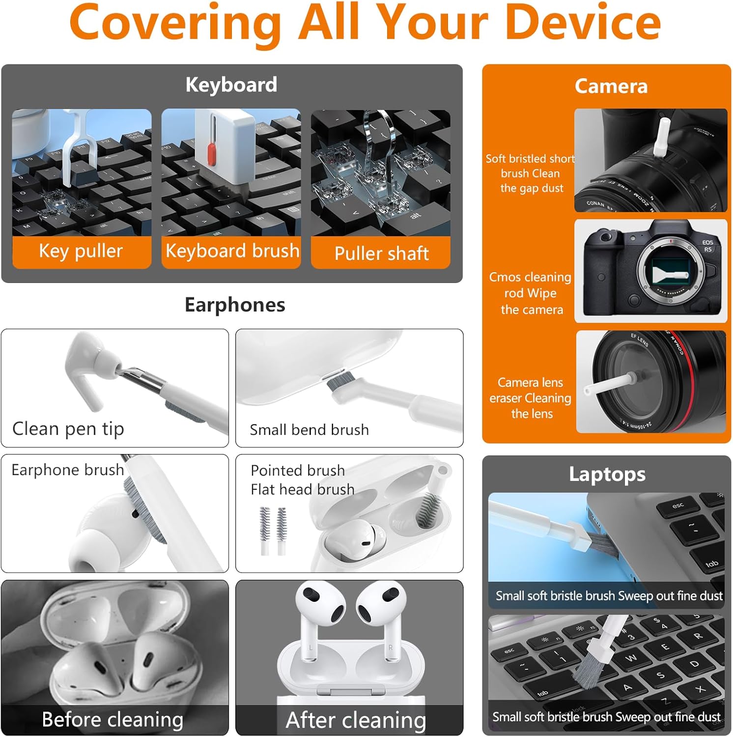 - AirPods & Earbuds Cleaning Kit: Your go-to airpods cleaning kit for maintaining peak audio quality—includes precision brushes and a cleaning pen to deep-clean earbuds and speaker grills, keeping your audio devices fresh and hygienic