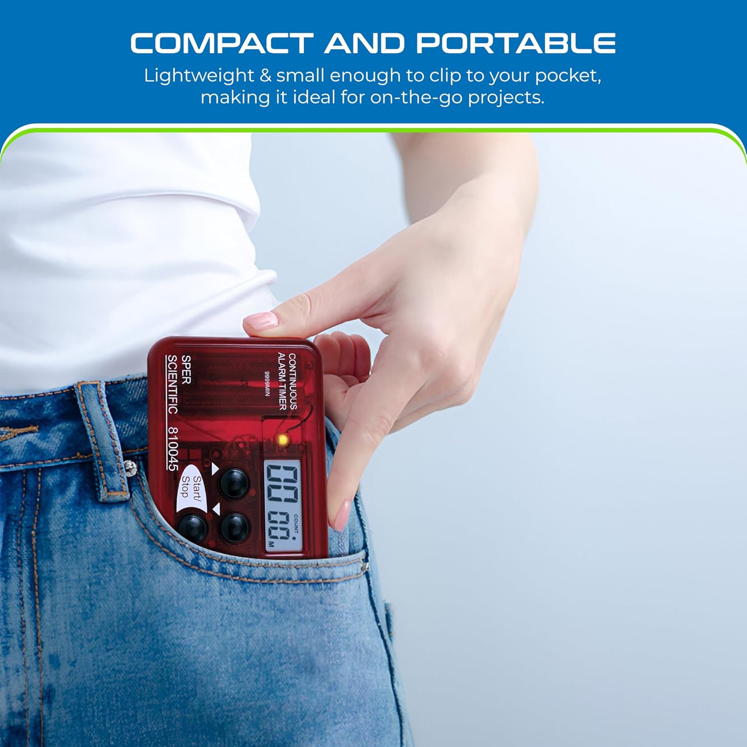 Sper Scientific Continuous Alarm Timer with Count Up Count Down & Visual Indicator 810045 - Bright LED Alarm & 9999-Minute Range - Portable Design for Cooking, Experiments, Fitness & More - 2 pc