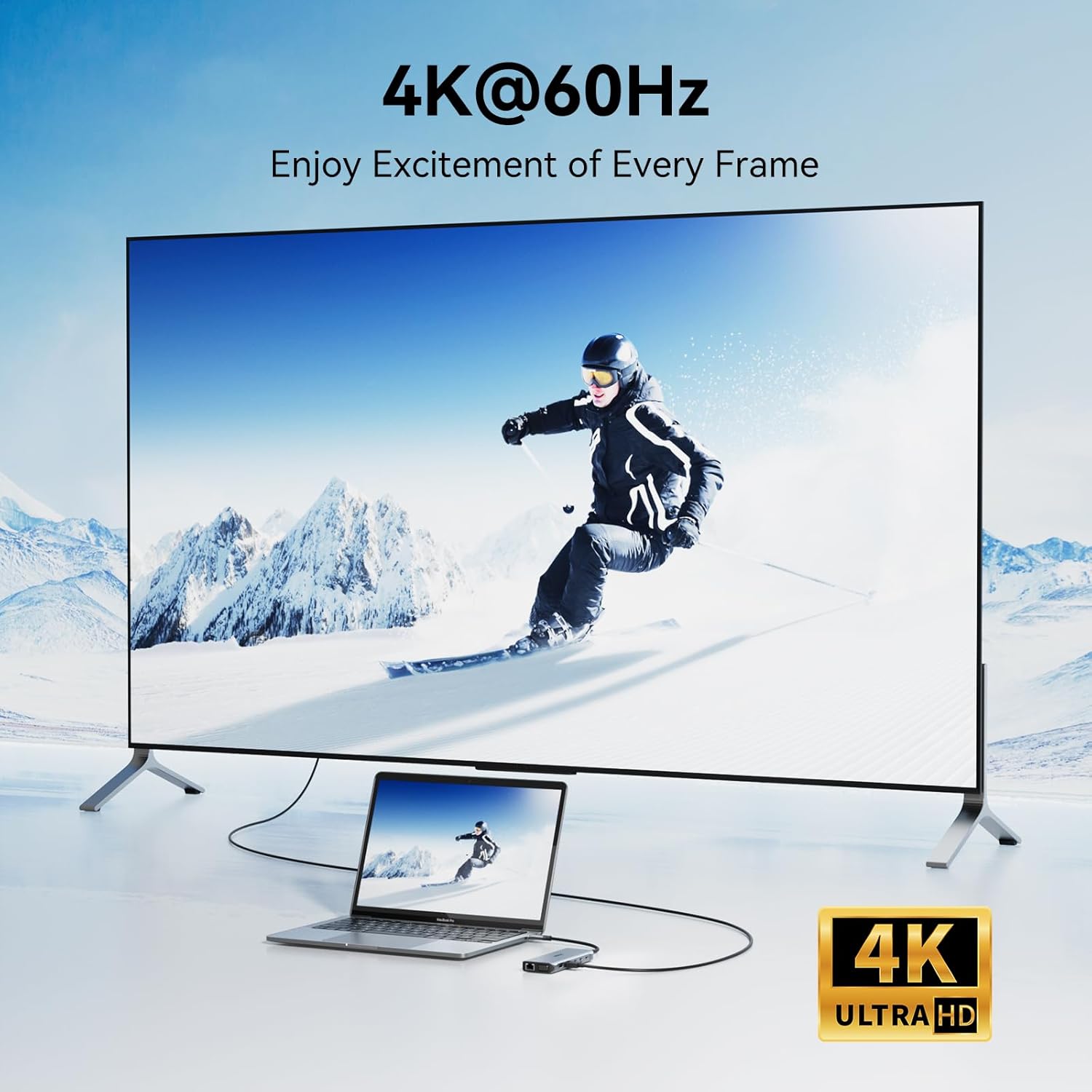 • 【Triple Display and 4K Ultra HD】: This usb c docking station will help you easily achieve dual-monitor and triple-monitor display to make your work/life more efficient; Single use HDMI up to 4K 60Hz under DP1.4 source; When connecting dual hdmi at the same time, the resolution support up to 4K@60hz and 4K@30hz; When triple display under DP1.4 source. resolution support up to 1080P when external 3 monitors are connected; (Note: Due to OS limitation, MacOs laptops only support SST mode, so all external monitor screens are the same)