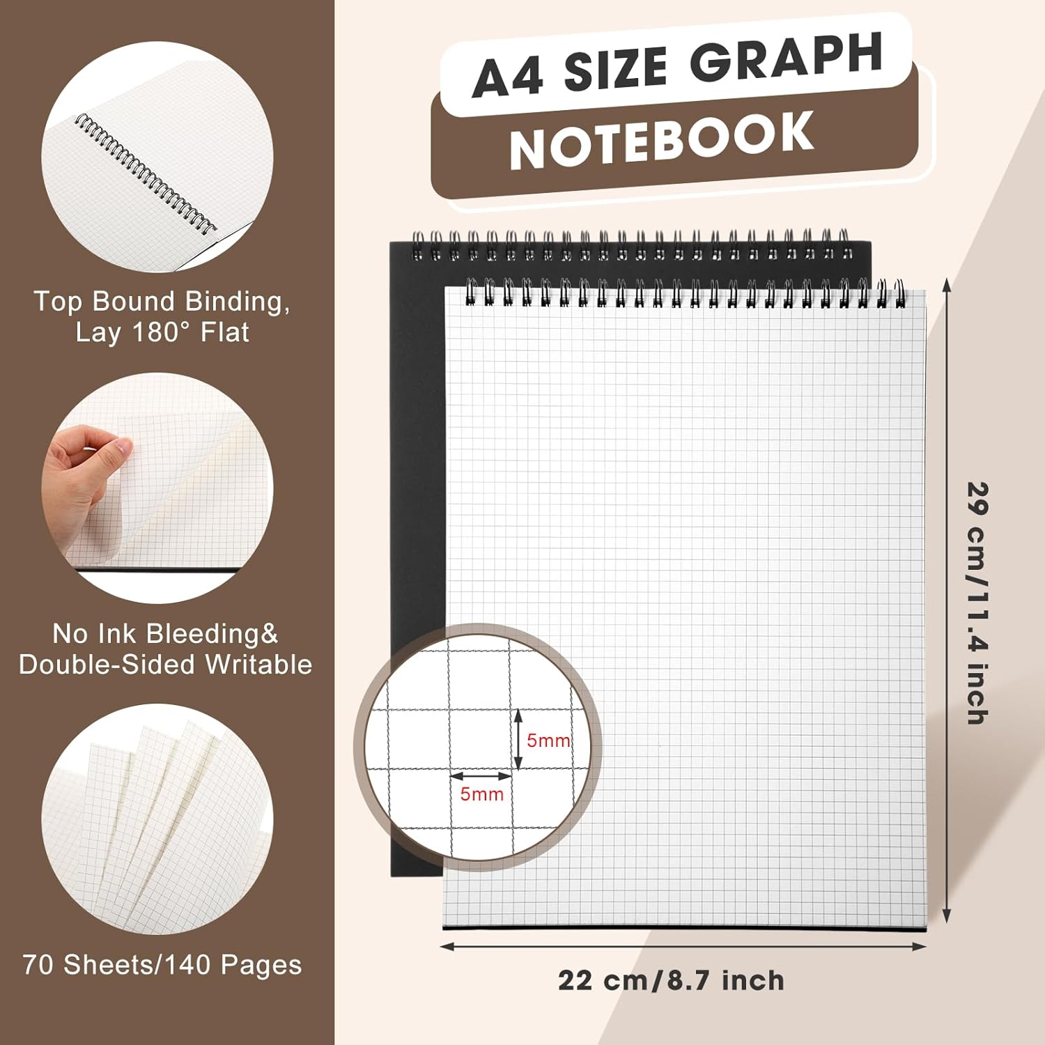 Top Spiral Graph Paper Notebooks 8.7 X11.4 Inch A4 Grid Paper Notepad 70 Sheet Memo Steno Pad for Engineering Writing Sketching Drawing School Office Supplies (1 Pack,Black)