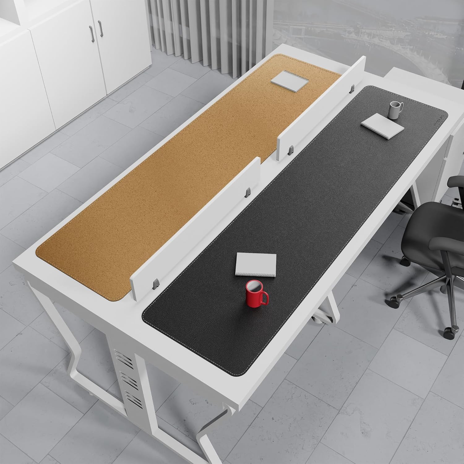 - Protective Cork & PU Leather Surface: Crafted with premium Cork & PU Leather, this desk mat shields wooden, glass, or polished desks from scratches and spills. Smooth textured surface prevents abrasions from daily keyboard use.