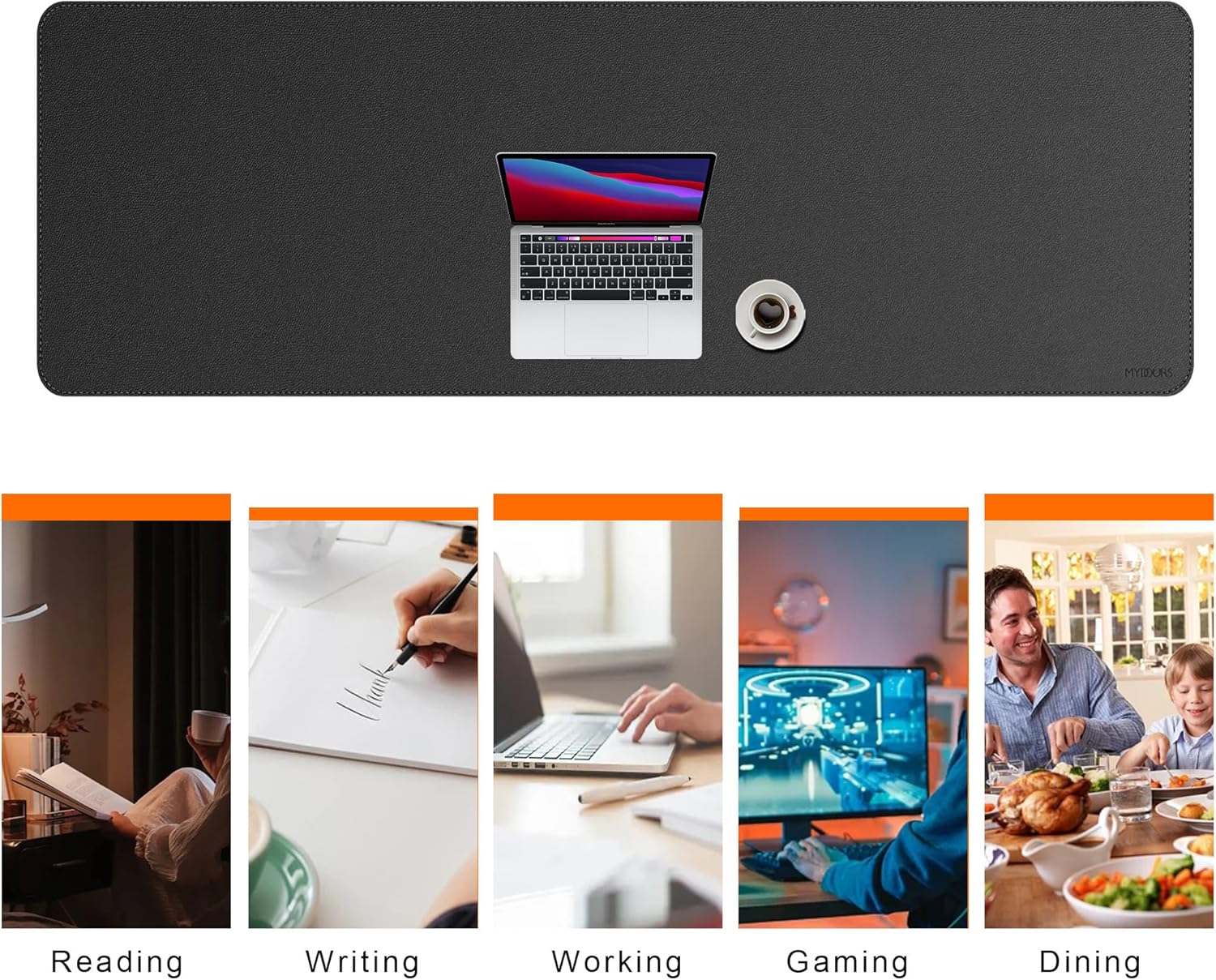 - Durable PU Leather: Constructed with Dual Sided PU leather, this desk mat delivers exceptional durability. Features a smooth, low-friction surface for precise mouse control. Reinforced grade stitching along the edges ensures resistance to fraying, even under intense daily use.