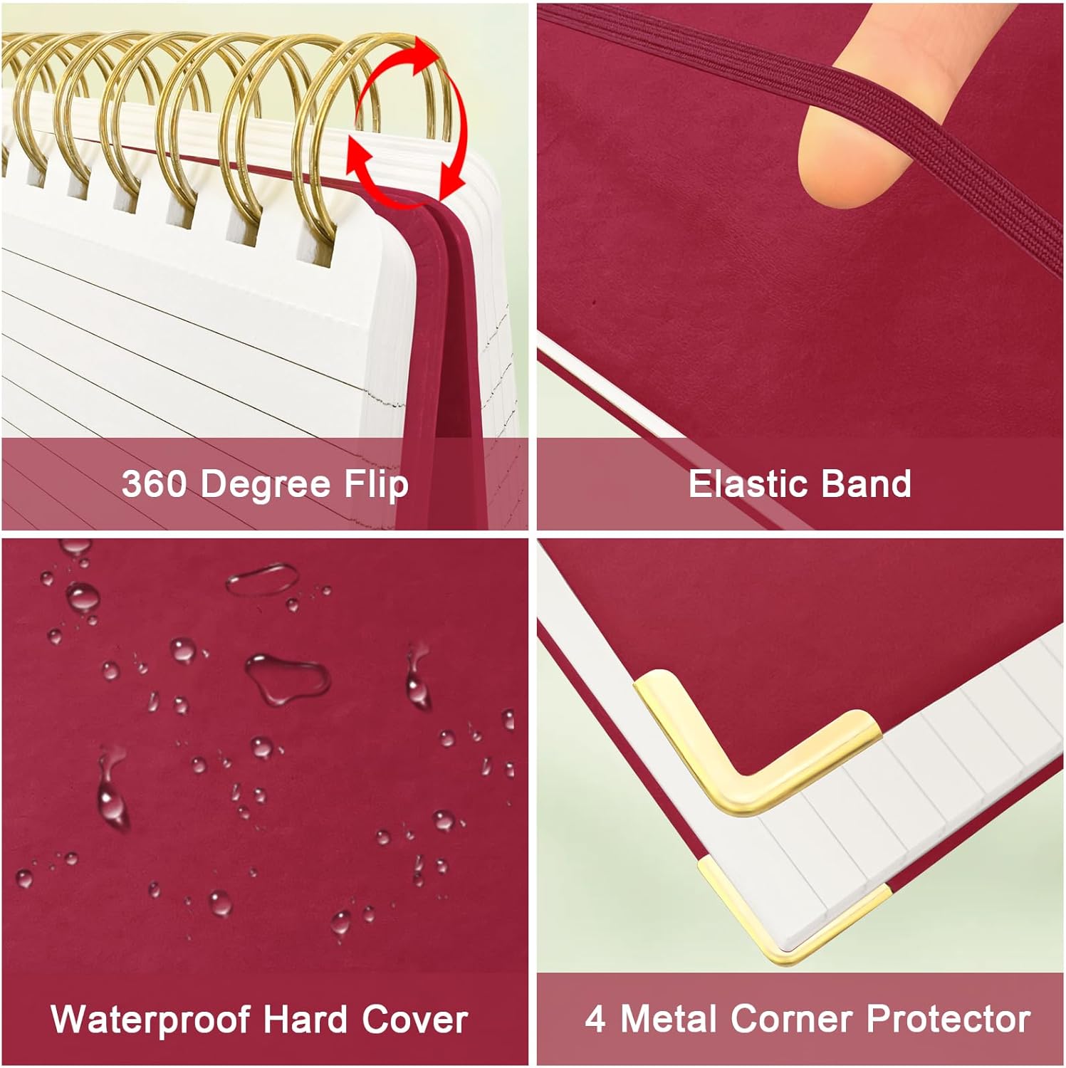 - 【WATERPROOF HARD COVER】The premium waterproof hard cover, reinforced with 4 gold-edged corners, protects your pages from wear and tear, making it a stylish top bound notebook with both functionality and elegance. The elastic closure strap keeps your spiral steno pads securely closed, while the hardcover design allows for comfortable handheld writing no matter where you are.