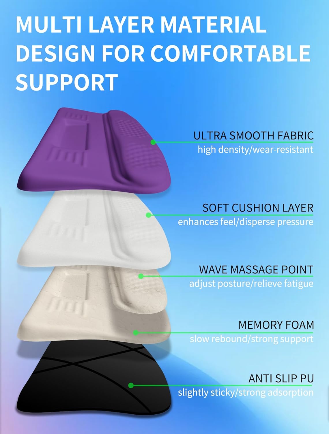 - 【 Memory Foam Massage Bead 】The slow rebound memory foam integrated molding process is adopted, which is comfortable and not easy to collapse. Designed with massage points to prevent sweating and relieve wrist pain and fatigue
