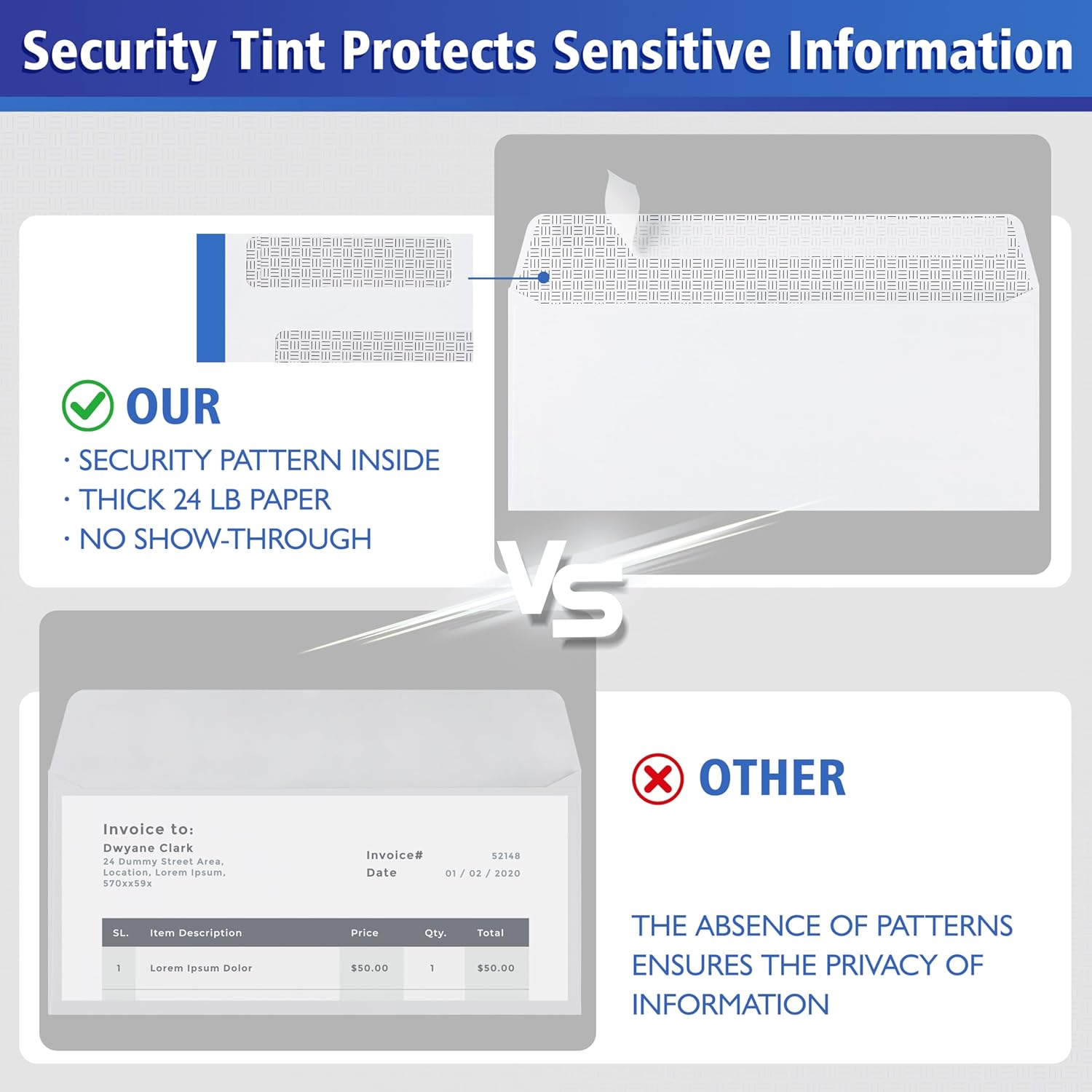 - 【Enhanced Security Tint】These security envelopes are made of premium thick 24LB paper to avoid rips, wrinkles, or ink bleed-through.Built with a security-tinted inner pattern to protect sensitive information during transit. Prevents data from being seen through the envelope, ideal for documents containing personal or financial details.