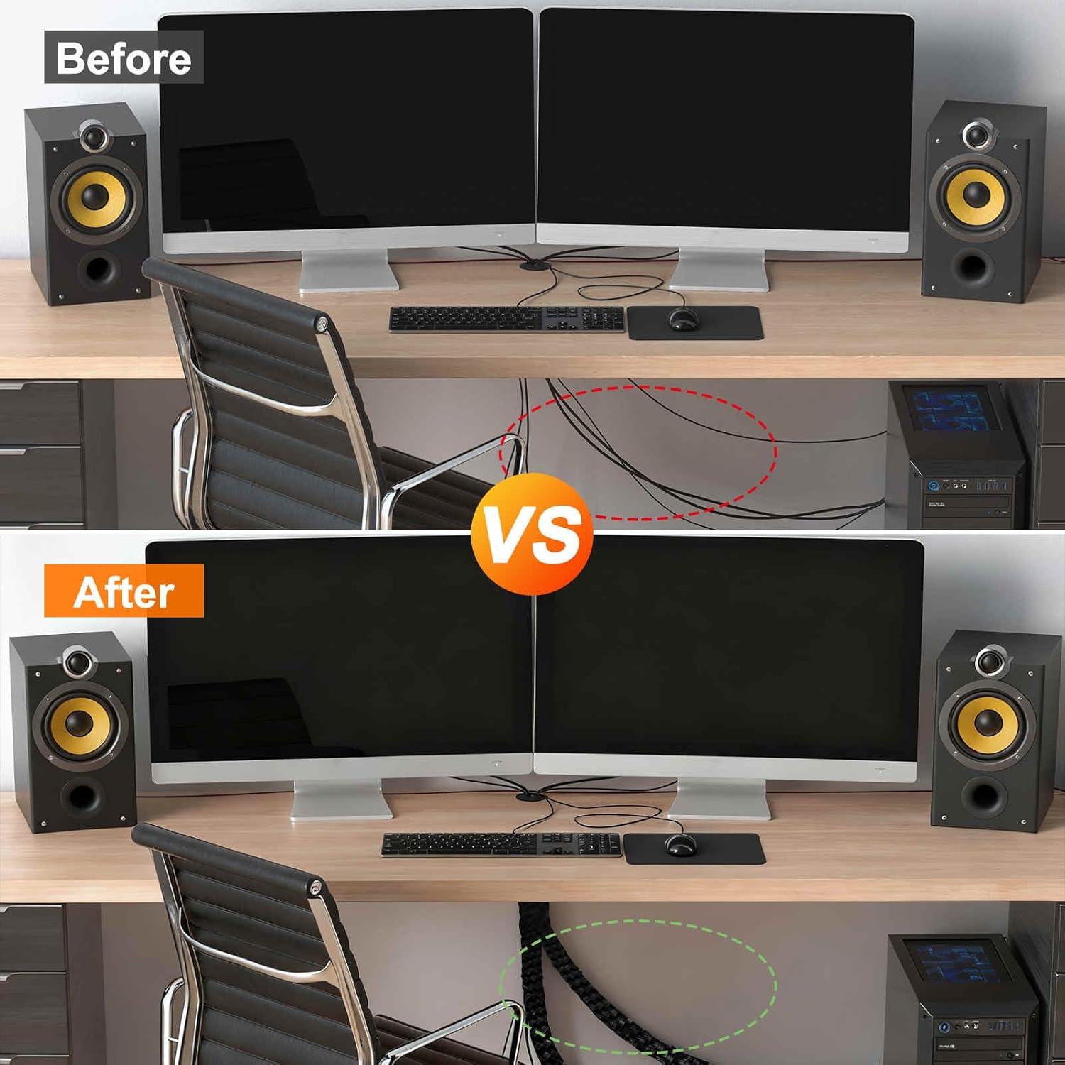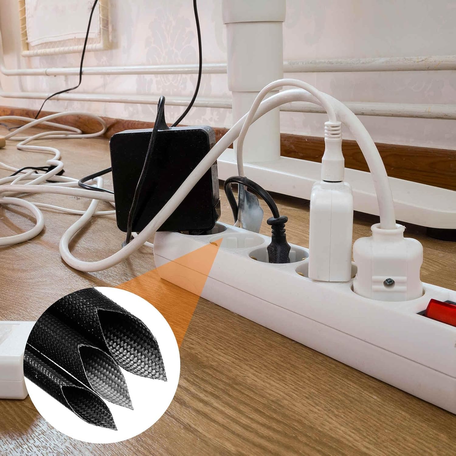 - The flexible yet sturdy construction of the sleeve ensures easy installation. Simply insert wires or cables directly into the sleeving, adjust to the desired length, and secure if needed, ensuring a snug fit to prevent tripping hazards and noise.